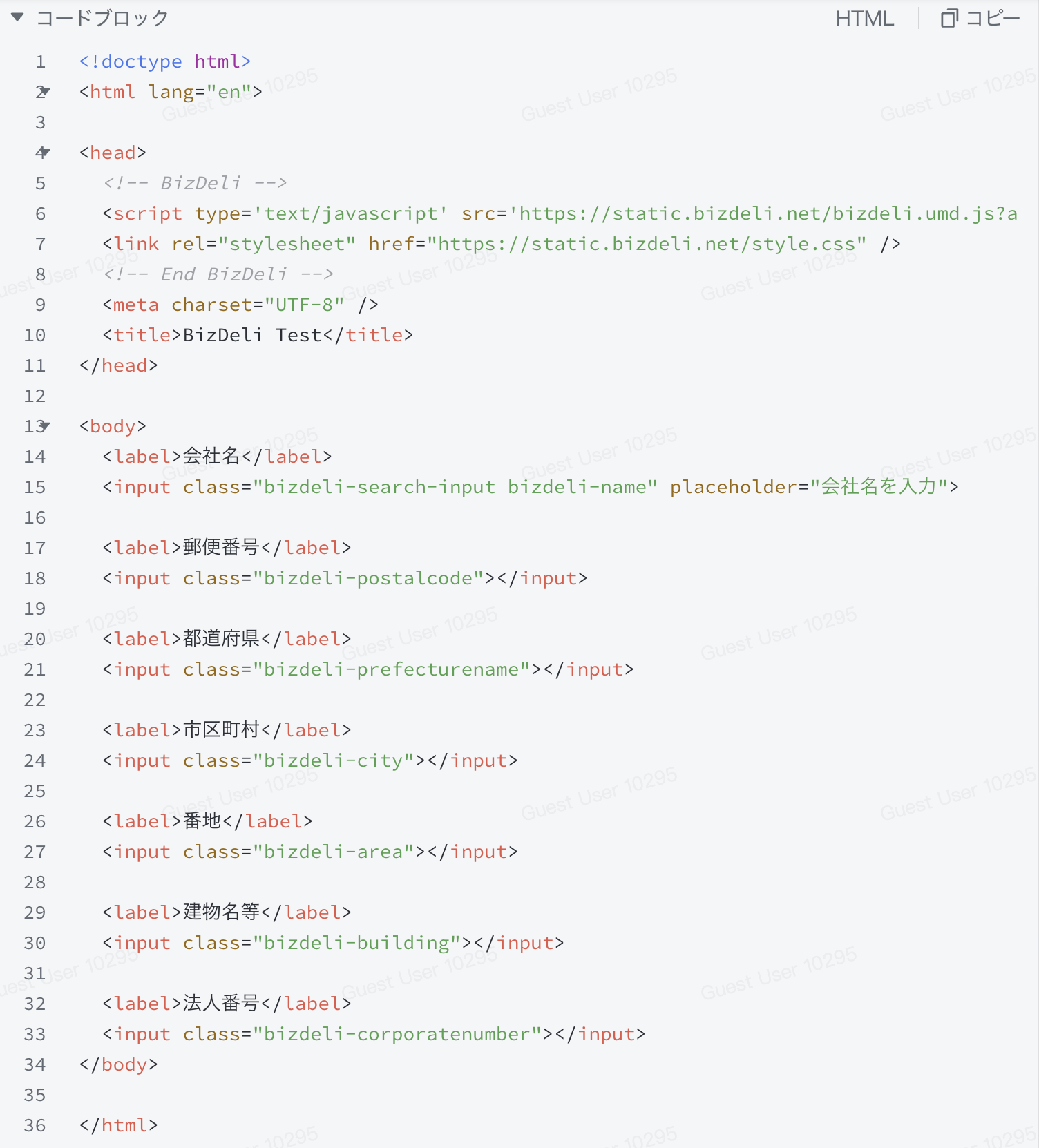 下記はHTML全体のサンプルコードなので、自社のフォーム形式に合わせて調整をしてみてください。