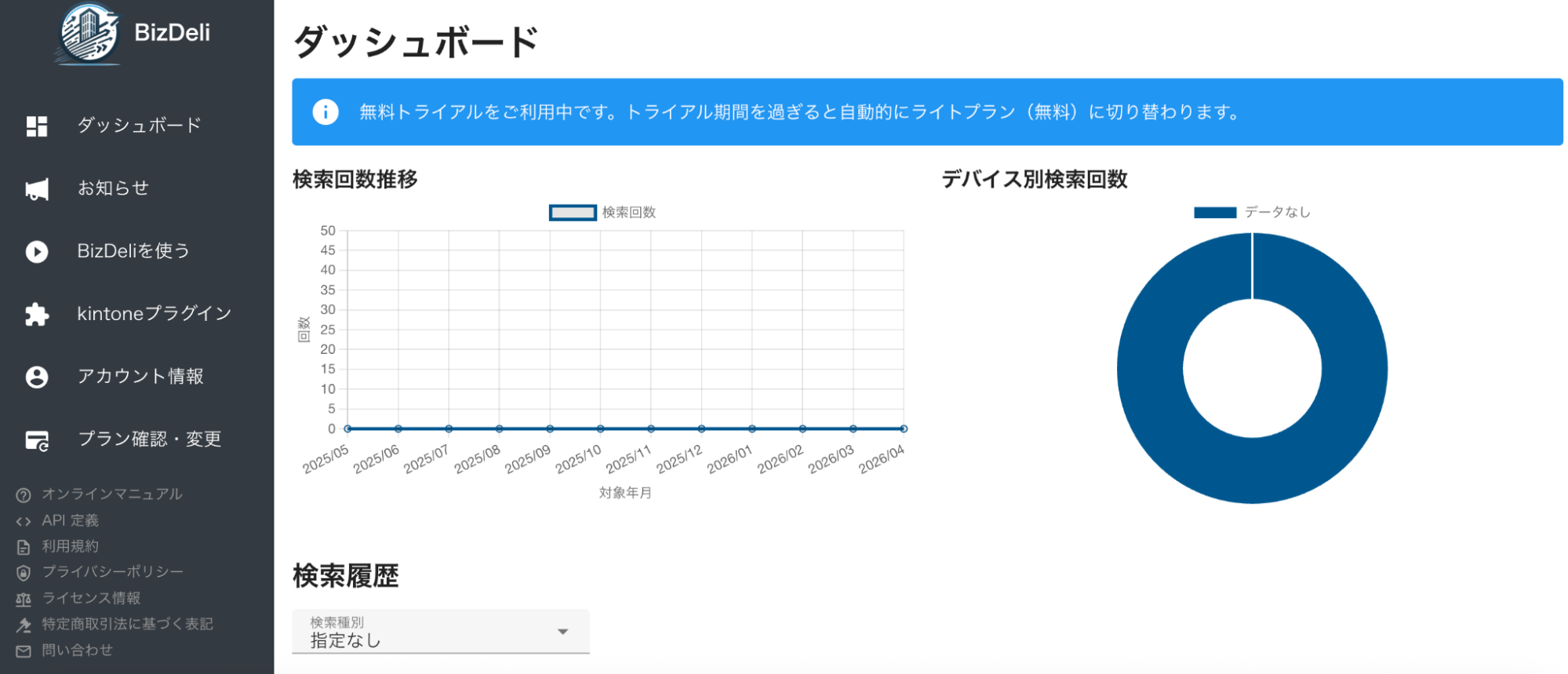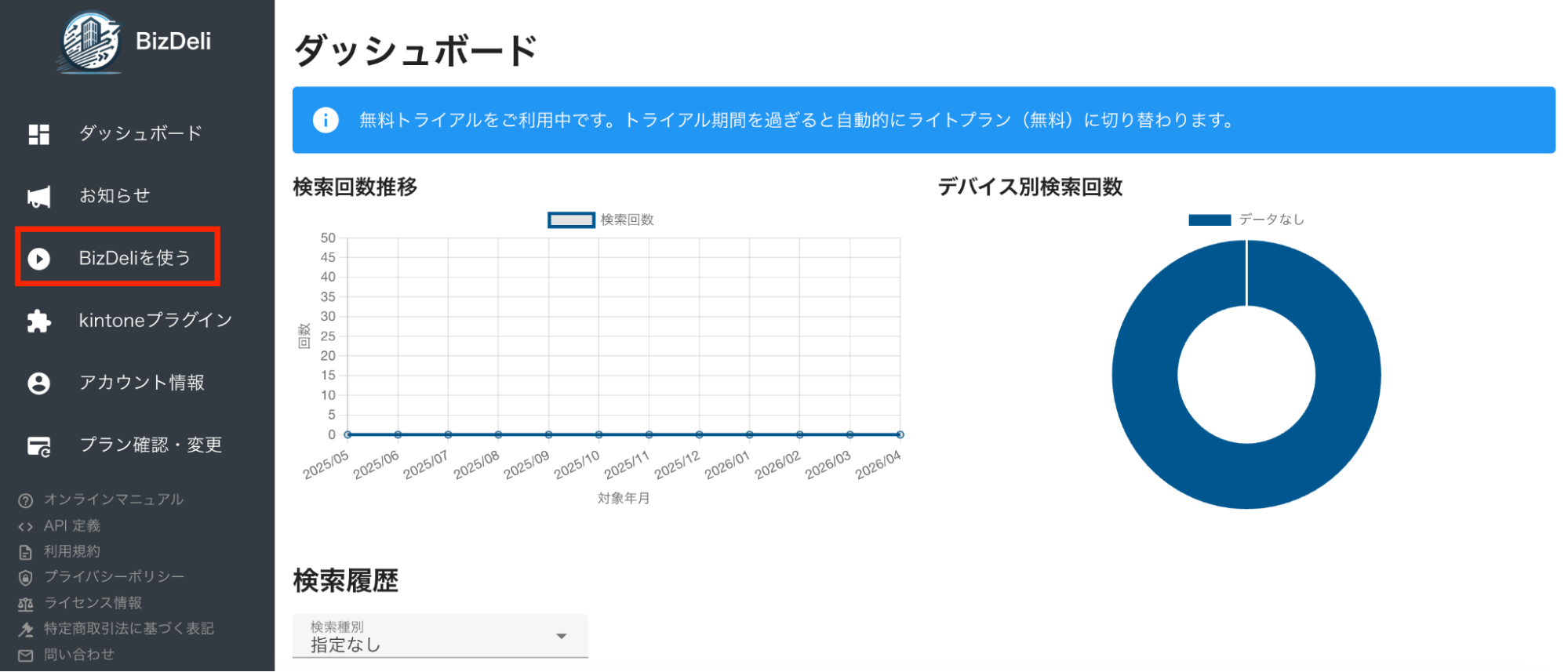一方で、BizDeliのベーシックプランでは30日間の無料トライアルが用意されています。実際の使用感を確認したうえで、導入を検討するのがおすすめです。