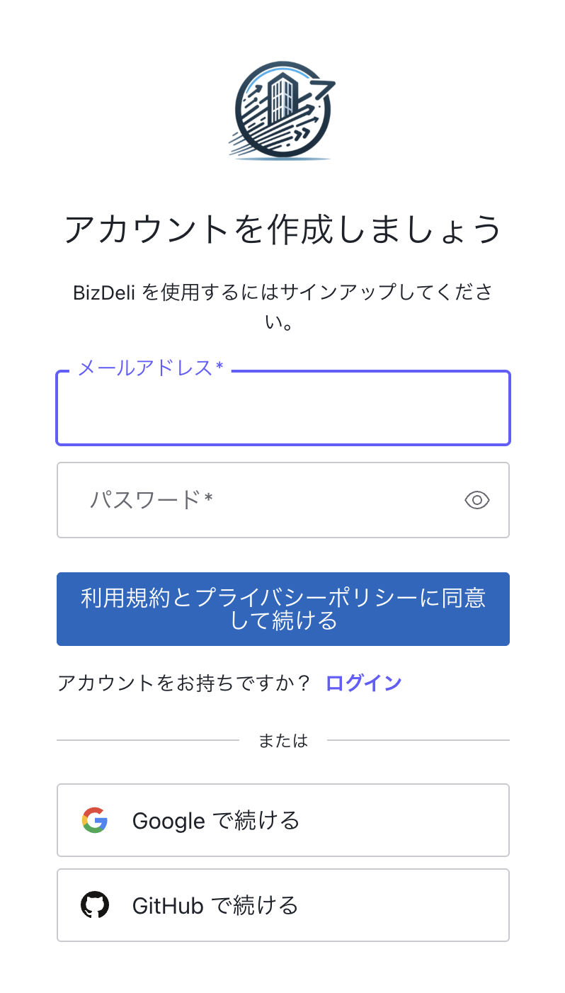 まずは、BizDeliの公式サイトでアカウント登録をします。