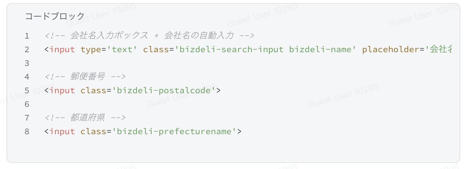 導入方法は非常にシンプルで、フォームの各項目を設定する際に、class属性へ指定のコードを追加するだけで完了です。特別なプログラミングは不要で、既存のフォームを活かしたままスピーディーに入力補助機能を実装できます。