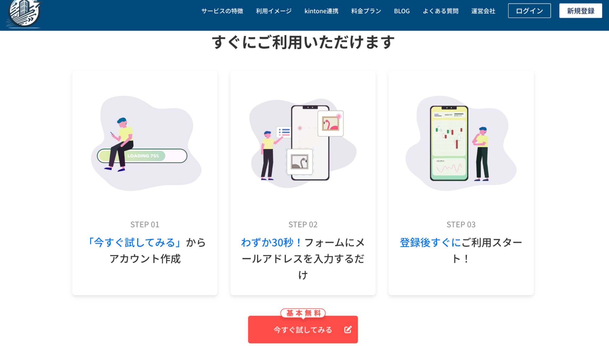 BizDeli公式サイトの「新規登録」または「今すぐ試してみる」をクリックして、登録画面に進みます。