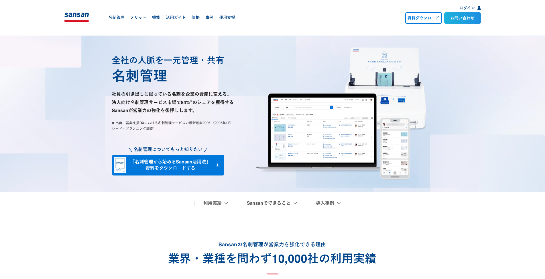 Sansanは、名刺管理市場で高いシェアを持つ代表的なツールです。