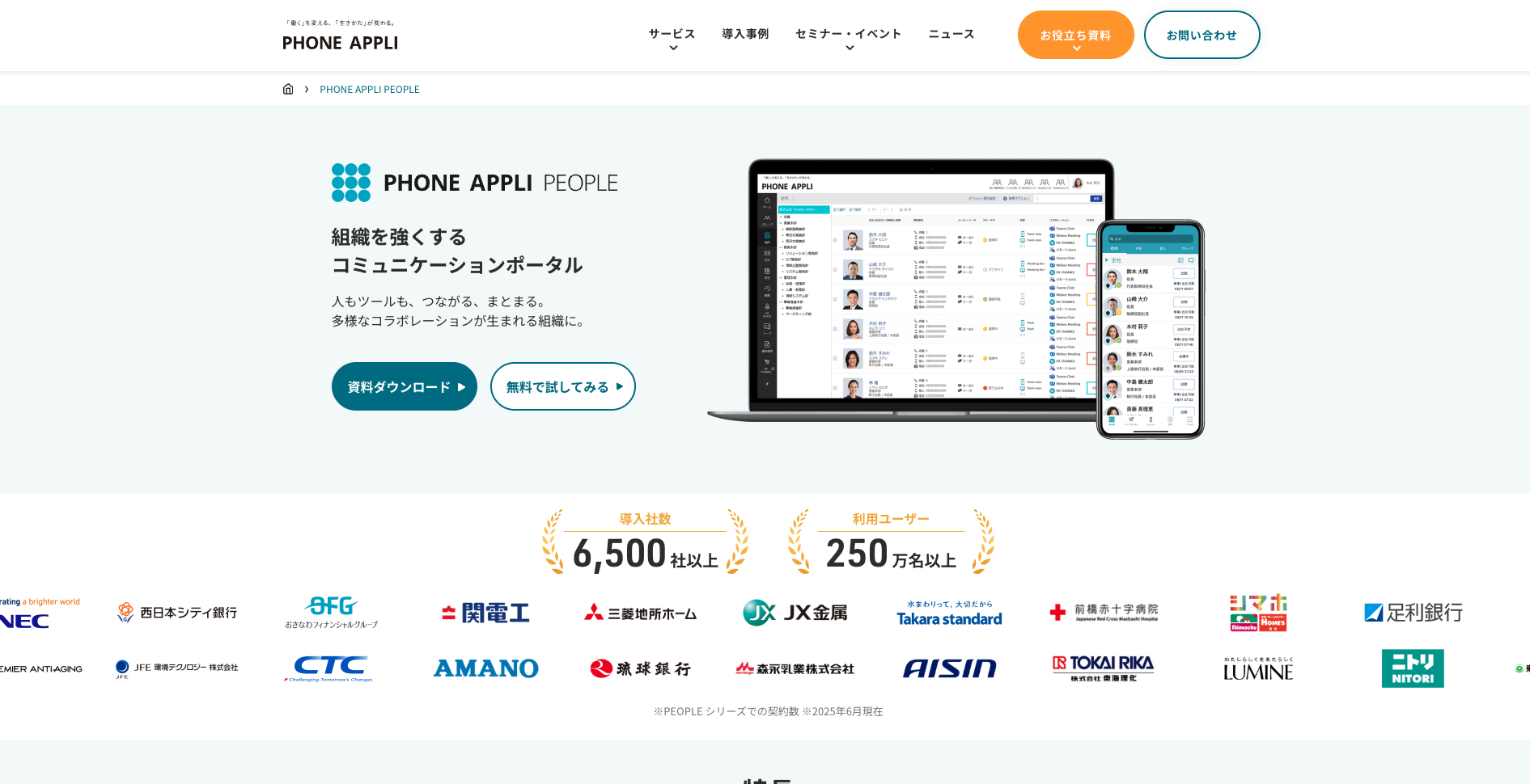 PHONE APPLI PEOPLEはプランにより提供機能・対象規模・価格帯が異なります。