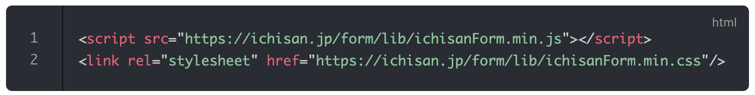 まずは、イチサンフォームを機能させるための準備をします。公式サイトに掲載されている以下の専用コードを、HTMLの<head>内に追加してください。