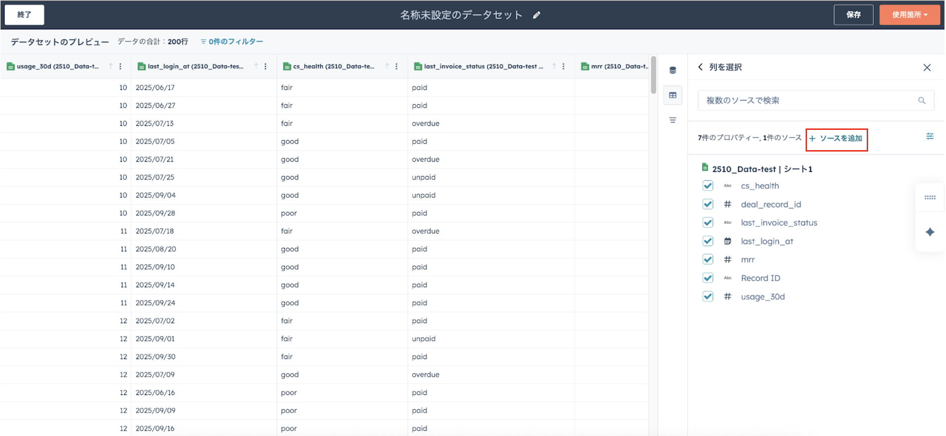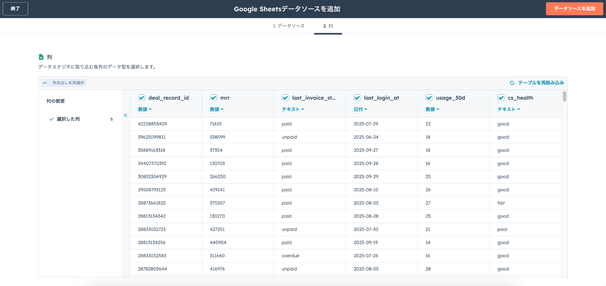 - HubSpotデータを追加