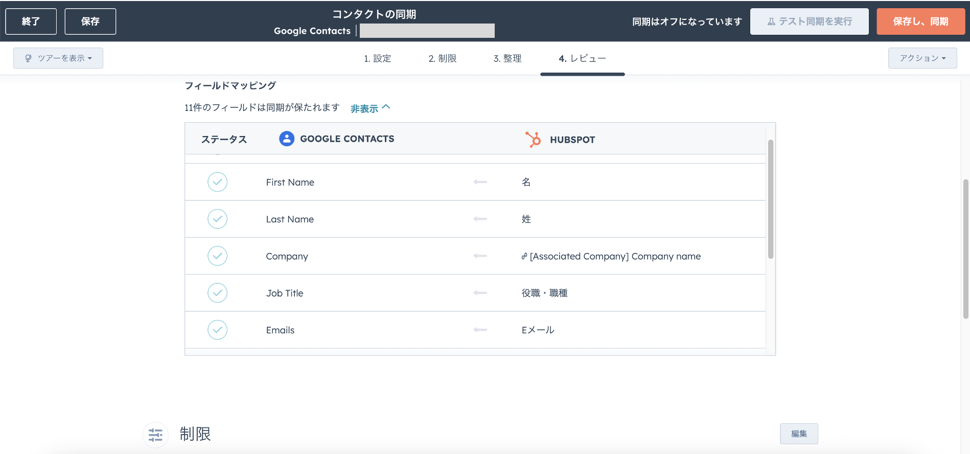 問題がなければ「保存し、同期」のボタンをクリックし、同期を開始させます。