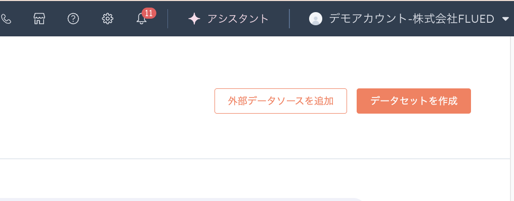左側のメニューから「データ管理」を選択し「データセット」を開きます。