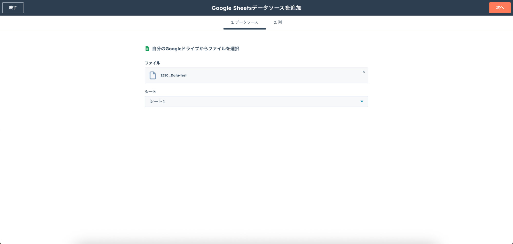 今回は、Google Sheetsを例にします。HubSpotとSheetsを連携し、読み込みたいスプレッドシートを指定します。