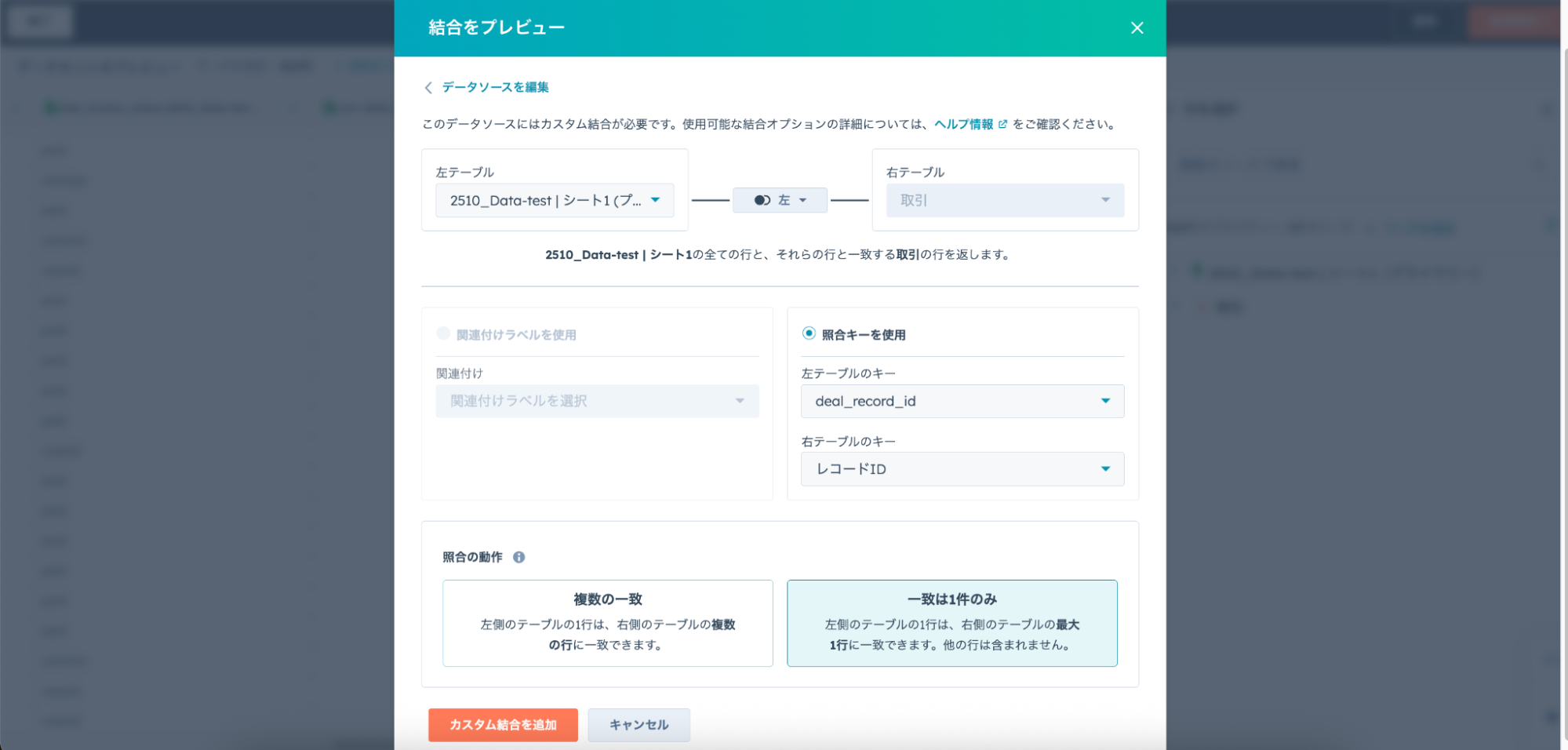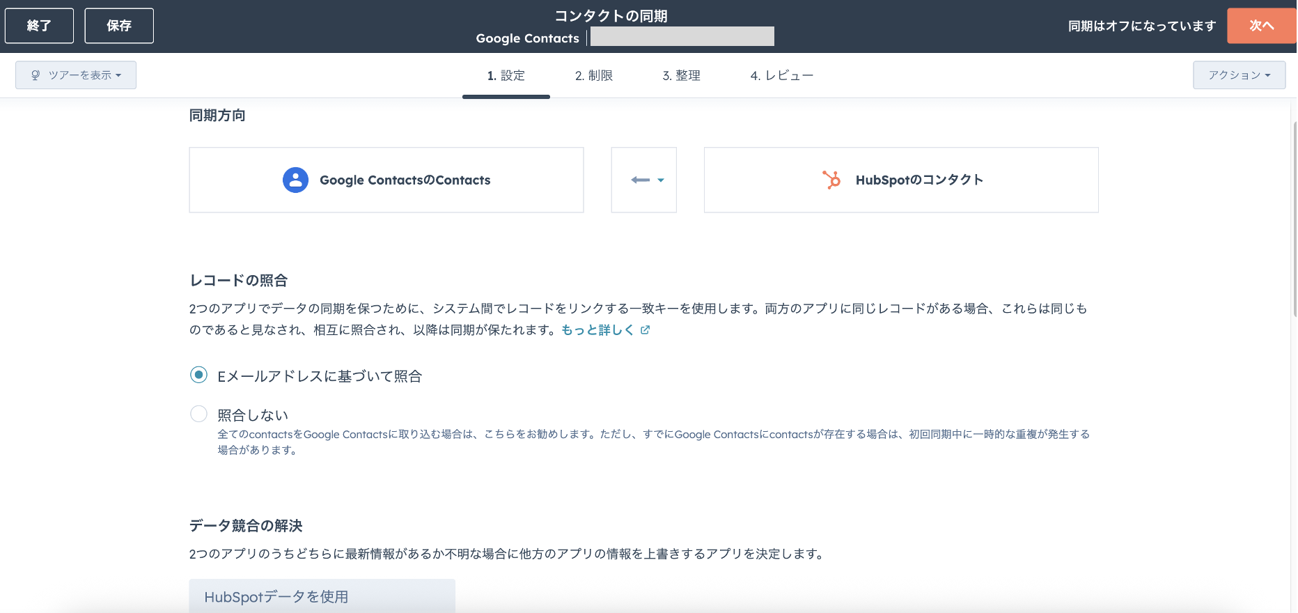 設定画面で、HubSpotのレコードIDをキーとして外部データと照合します。