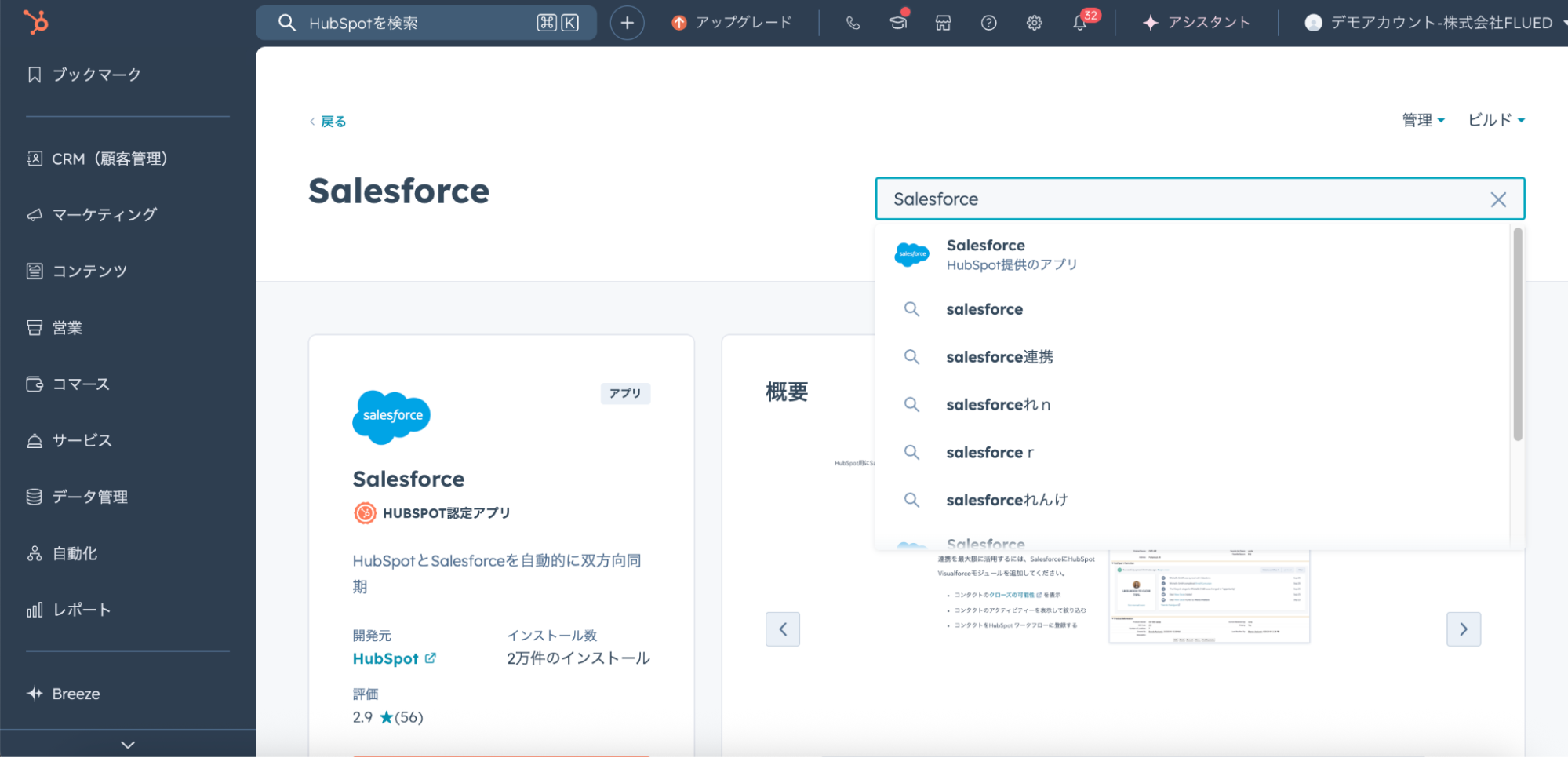 前提条件を満たしていることを確認したら、HubSpot側から連携アプリをインストールしましょう。
