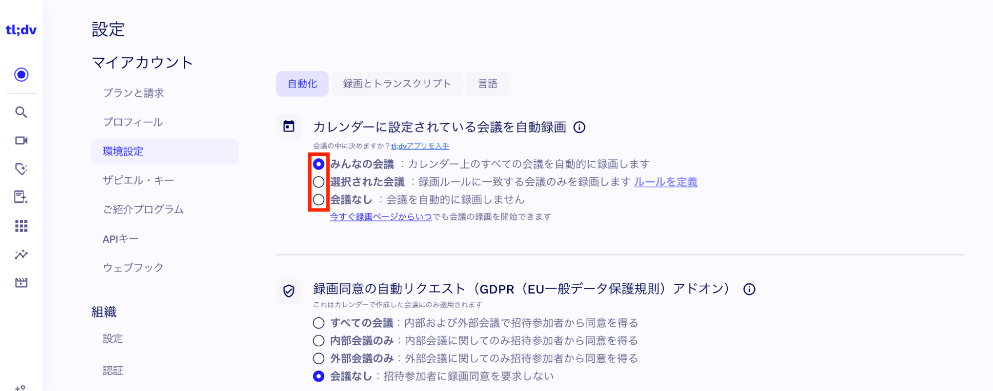 まず押さえておきたいポイントは、tl;dvの設定画面で「自動参加設定」がONになっているかどうかです。どのカレンダーや会議タイプに自動参加するかを、事前に設定しておきましょう。