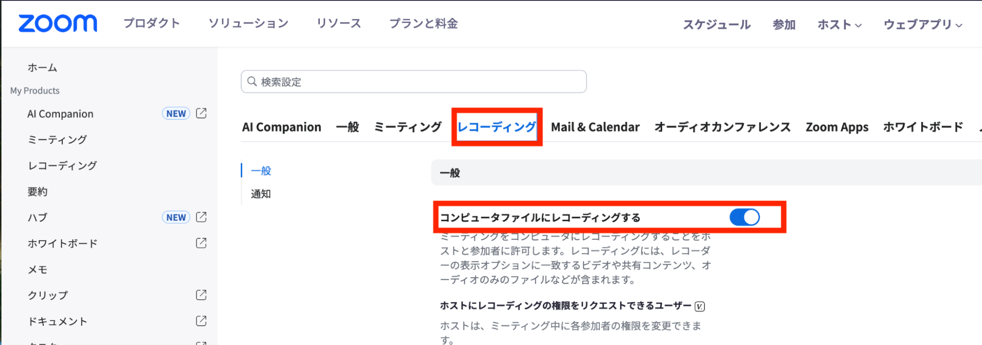 - Zoomの録画権限が許可されていない