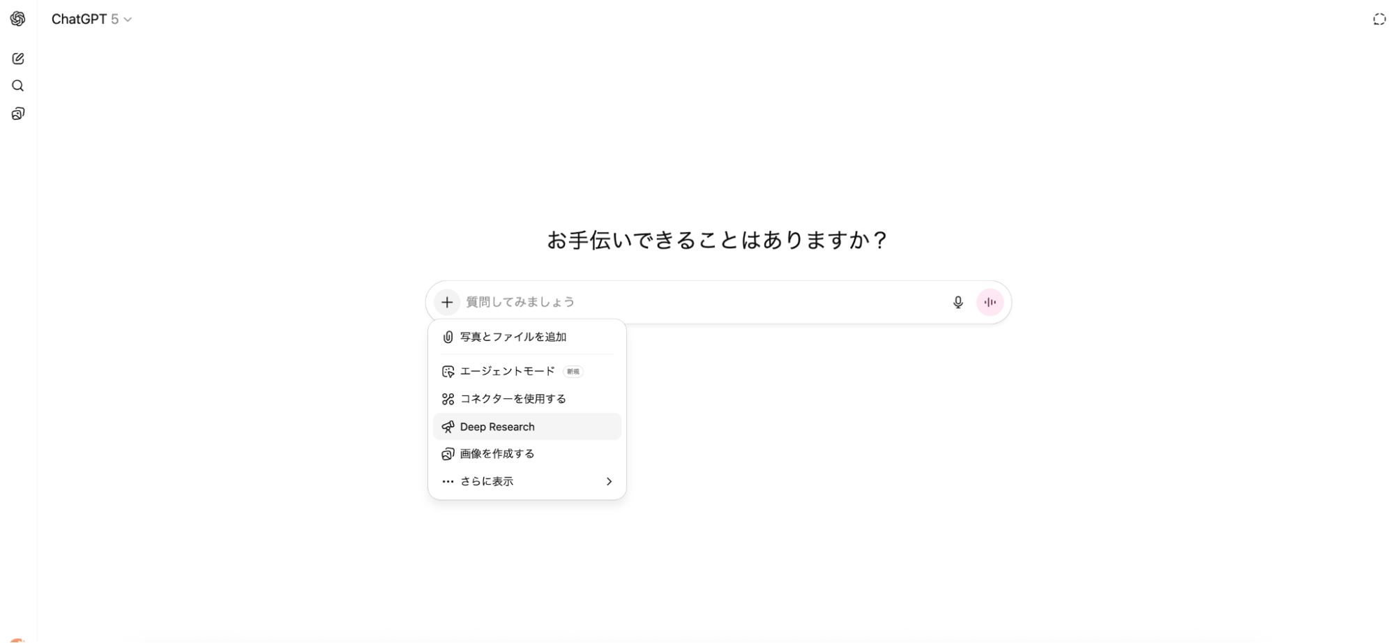 まず、ChatGPTにログインし、Deep Researchを有効にしてください。