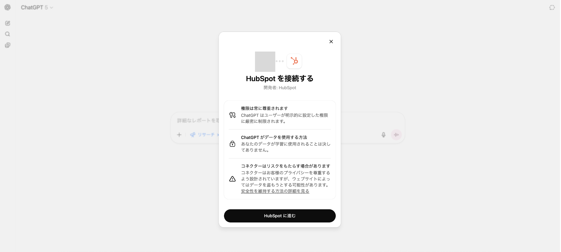 Deep Research ConnectorでHubSpotとChatGPTを接続します。