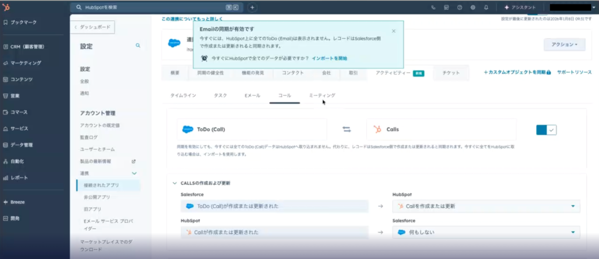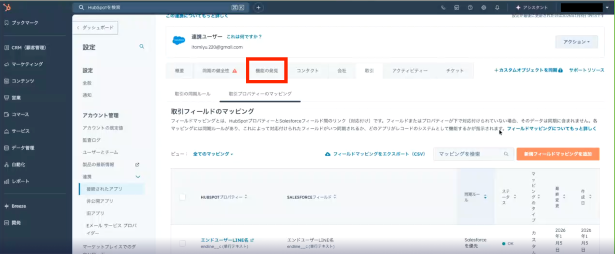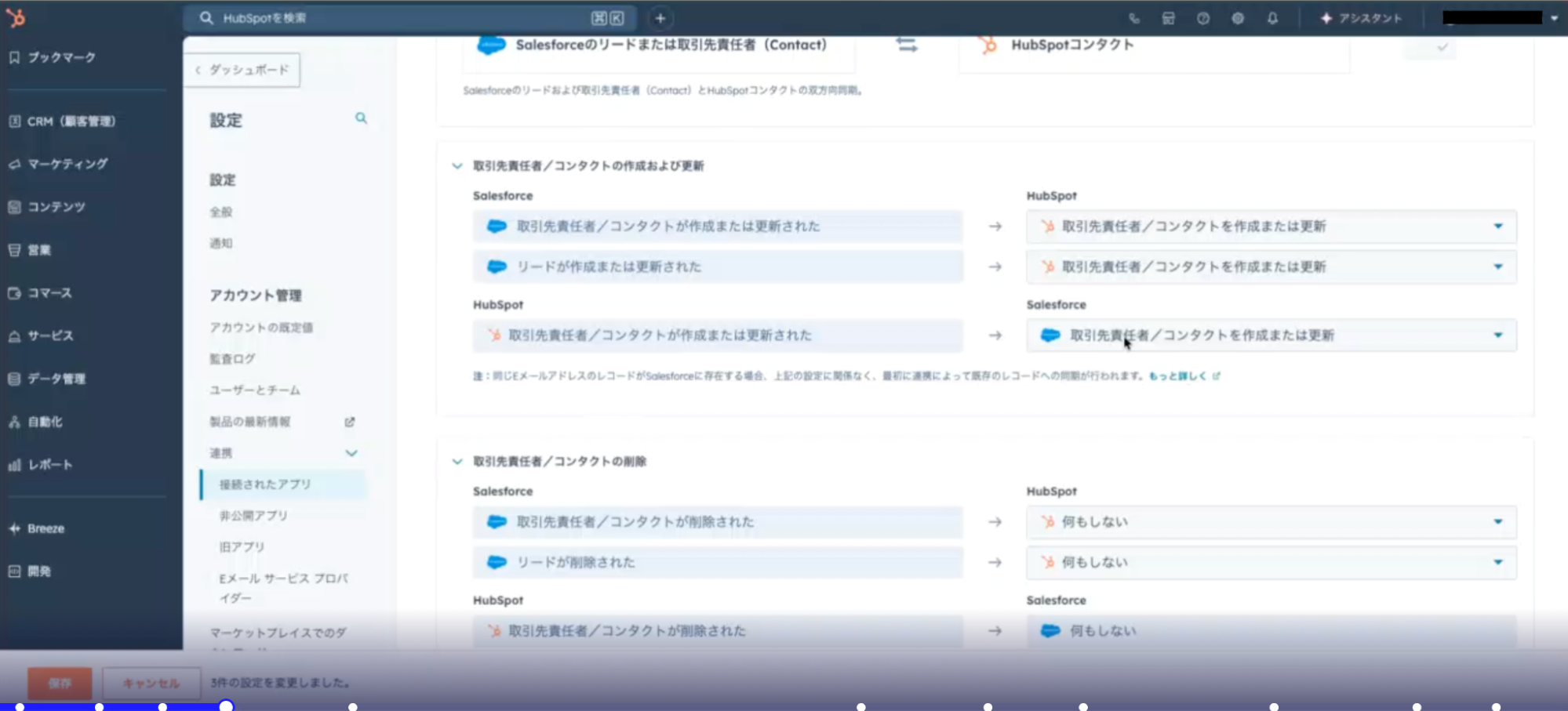 - Salesforce連携アプリとHubSpotの同期設定をする