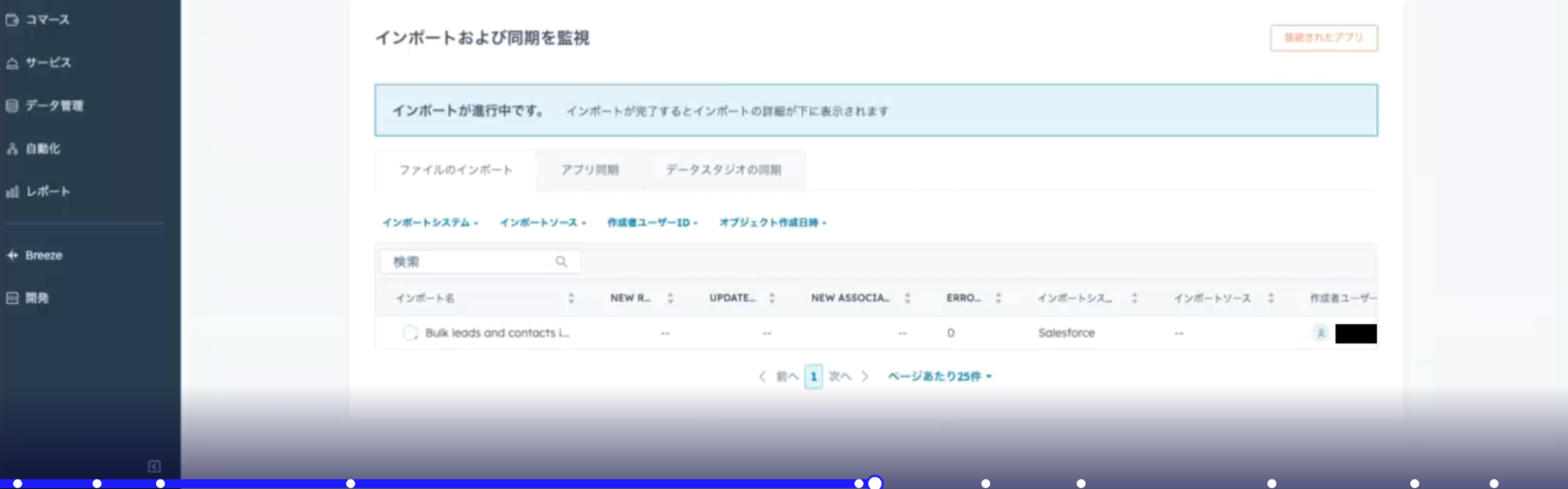 Salesforce連携アプリでデータをセットアップしただけでは、既存データはHubSpotに移行されません。アプリ連携はあくまで同期のための準備であり、データの取り込み自体は別途インポート作業が必要です。