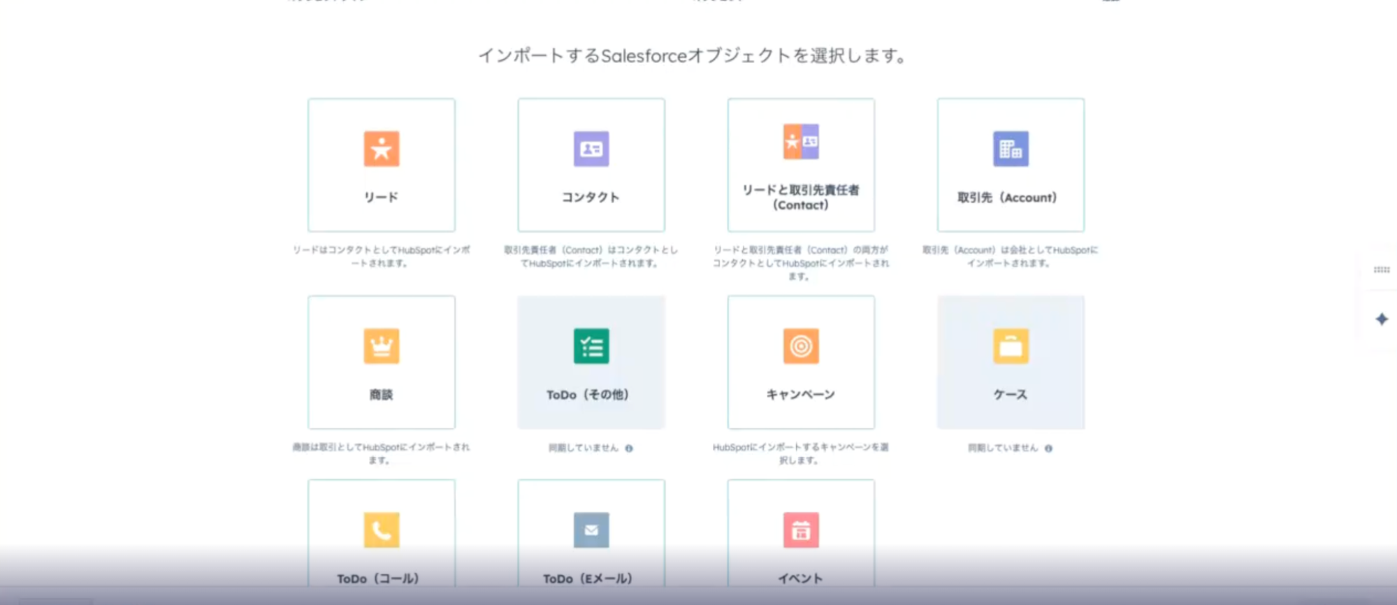 SalesforceからHubSpotへデータを反映させるには、インポートを実行する必要がある点に注意しましょう。