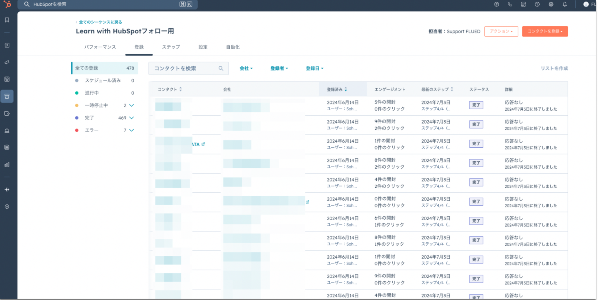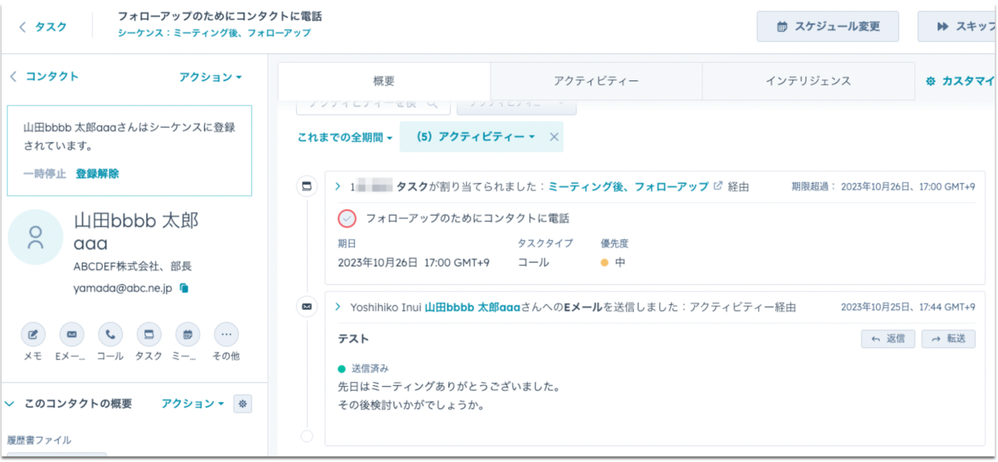 また、個々のコンタクトの活動履歴をチェックすることで、「シーケンスのどのステップで反応があったか」まで詳細に把握することが可能です。