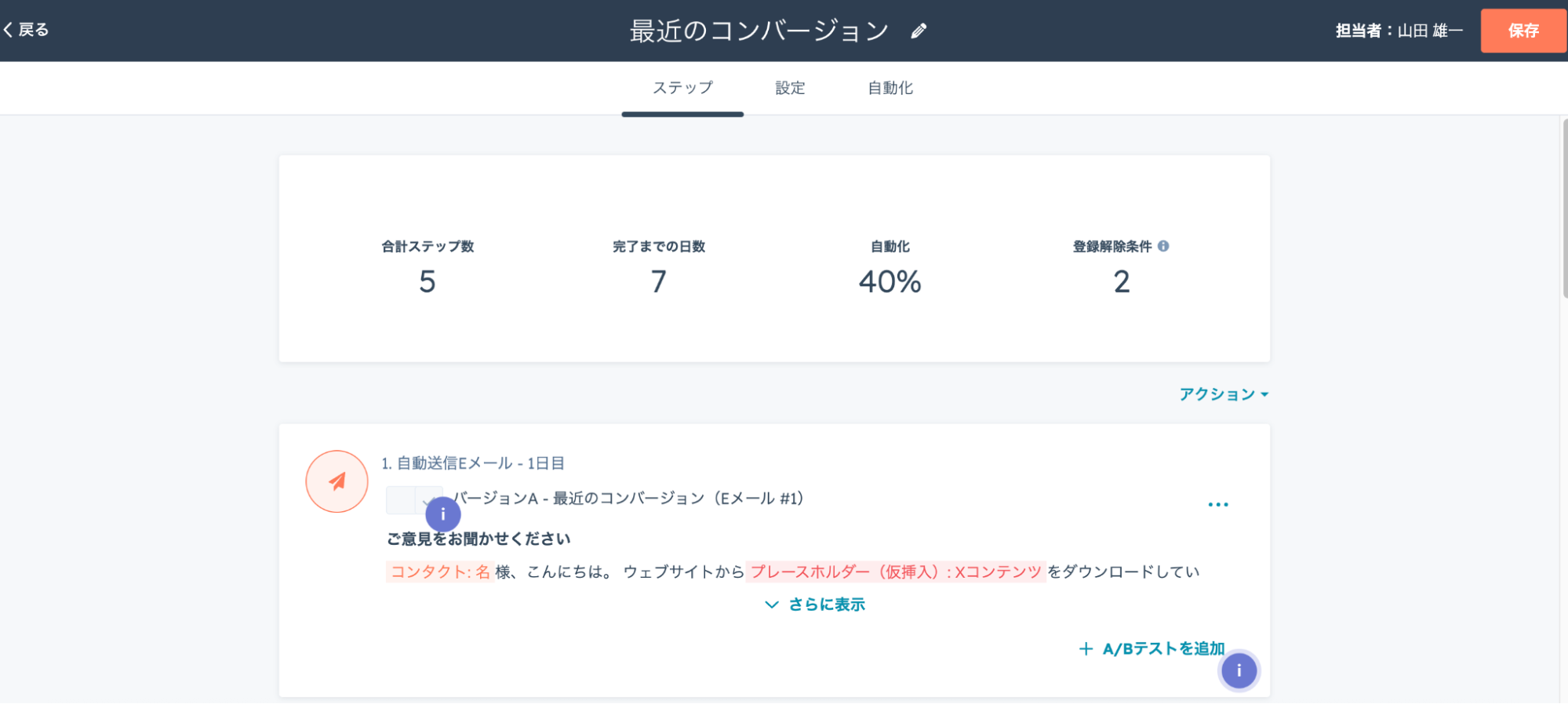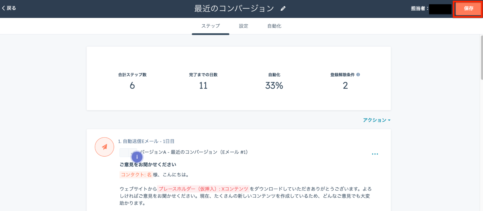 作成した一連のステップに問題がないかを確認し、問題なければ右上の「保存」をクリックします。