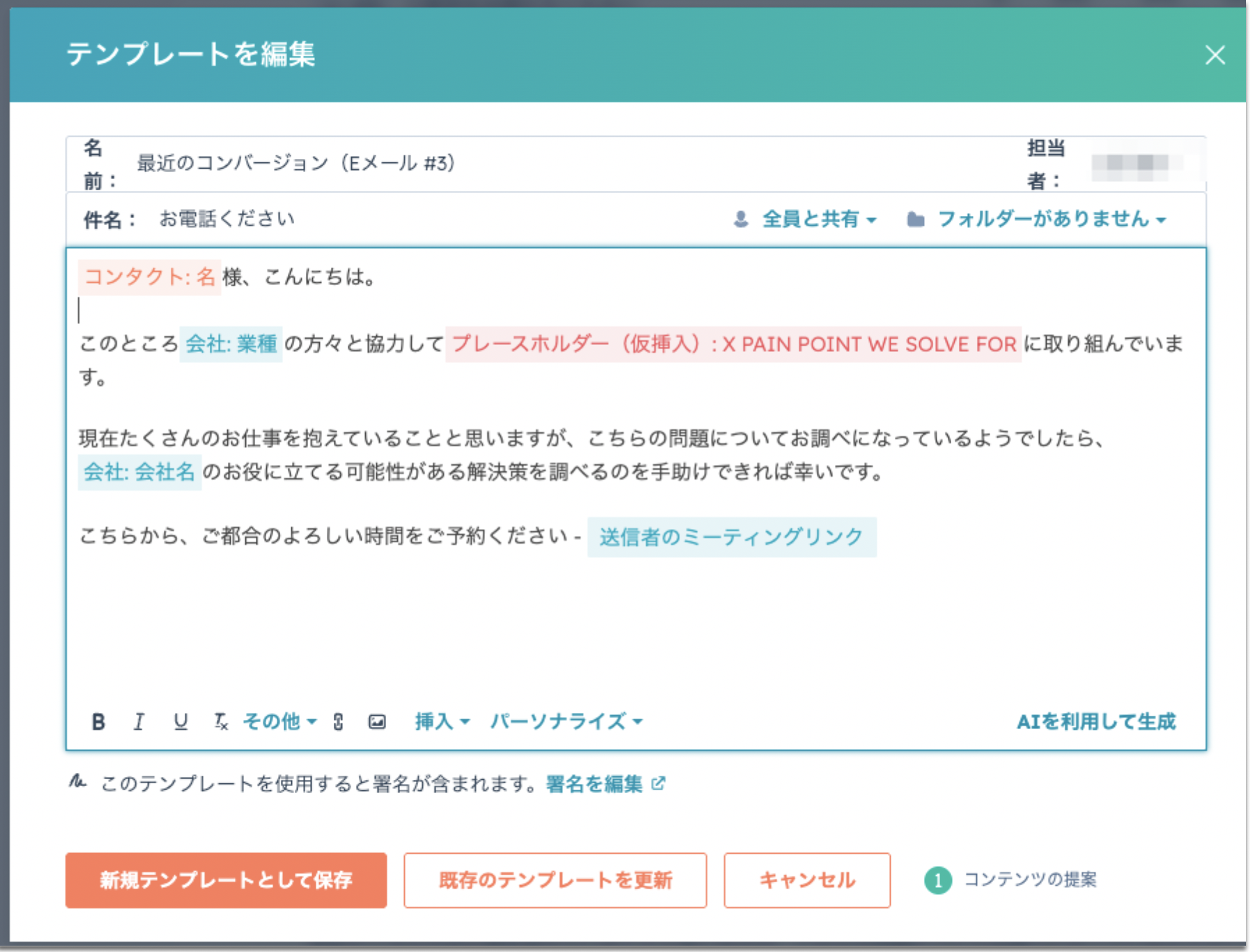 この際、メールテンプレートにパーソナライズトークンを適切に使用すると、自動送信でありながら個別性の高いコミュニケーションができます。